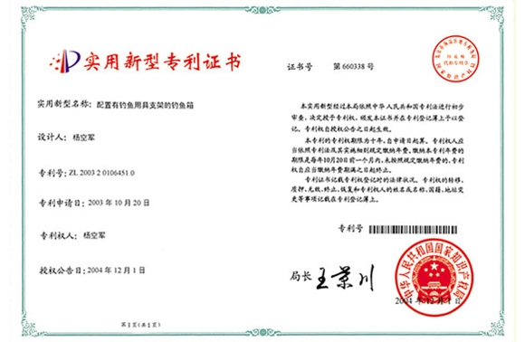 實(shí)用型專利證書