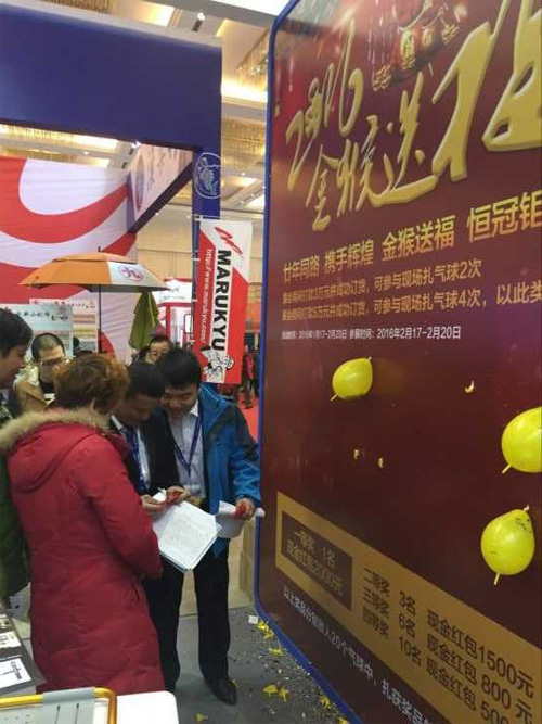 恒冠2016年春季展展會期間推出現(xiàn)場扎氣球活動,現(xiàn)場抽現(xiàn)金紅包,讓客戶真實體驗中獎的激動及新年的好運氣。